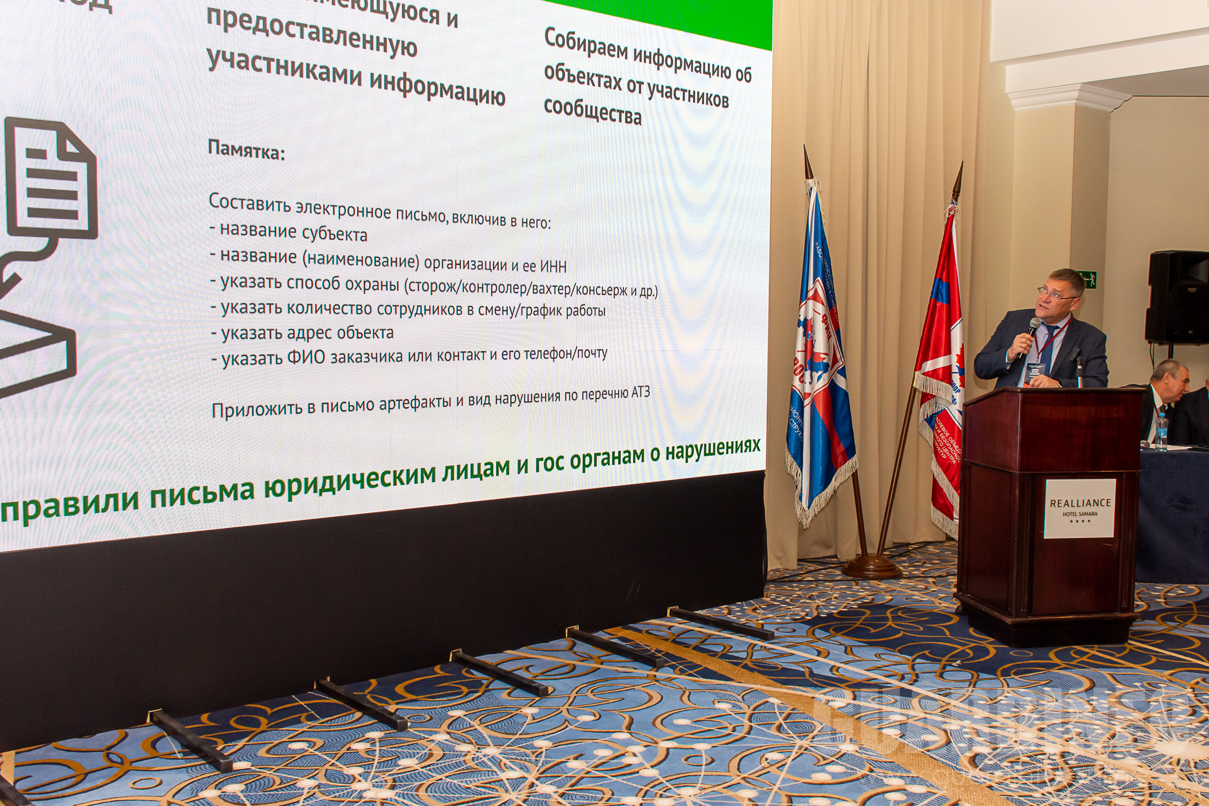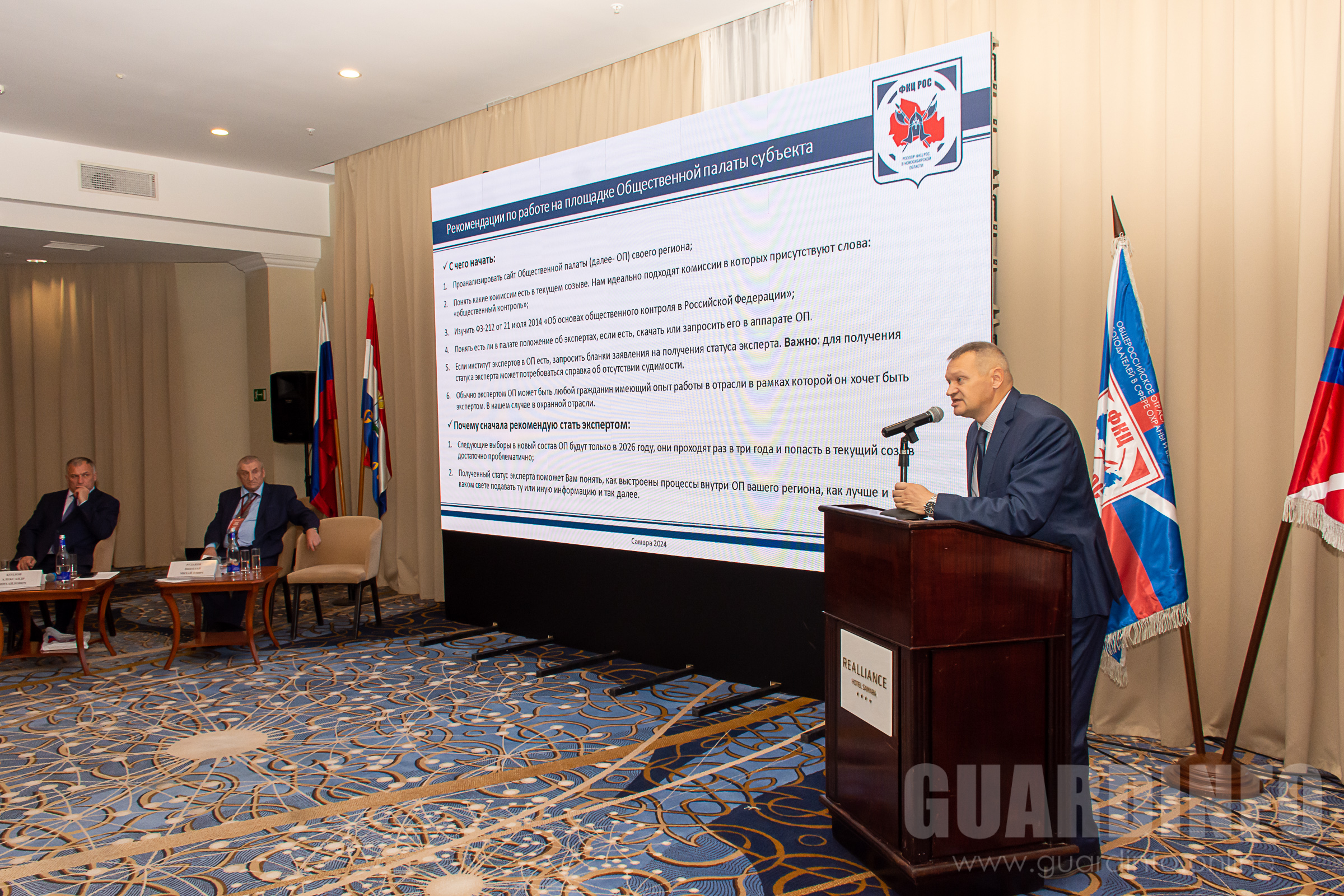Председатель РООООР ФКЦ РОС в Новосибирской области Максим Свищев довел до участников совещания практические аспекты взаимодействия с Общественной палатой, как с инструментом борьбы за качество охранных услуг.